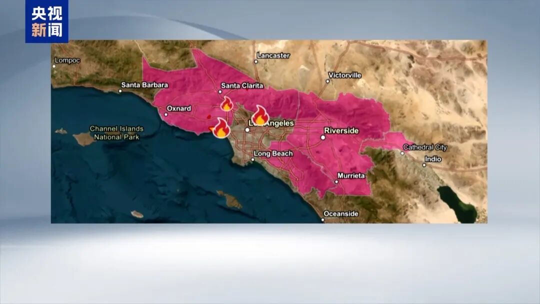 加利福尼亚州林业和消防局网站上的舆图清晰,加州洛杉矶县以及隔邻大片地区均已发布“红旗教唆”,该教唆意味着当地可能出现高温、低湿度和强风集聚的天气,发生失火的风险会相应加多,这一教唆将一直捏续至15日。